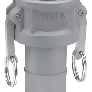 El Acople Camlock Parte “C” es un conector hembra equipado con brazos de bloqueo laterales (levas) en su parte superior, y una espiga acanalada (Hose Shank) en su extremo inferior. Está diseñado para insertarse directamente dentro de mangueras industriales de succión o descarga, asegurándose mediante abrazaderas.